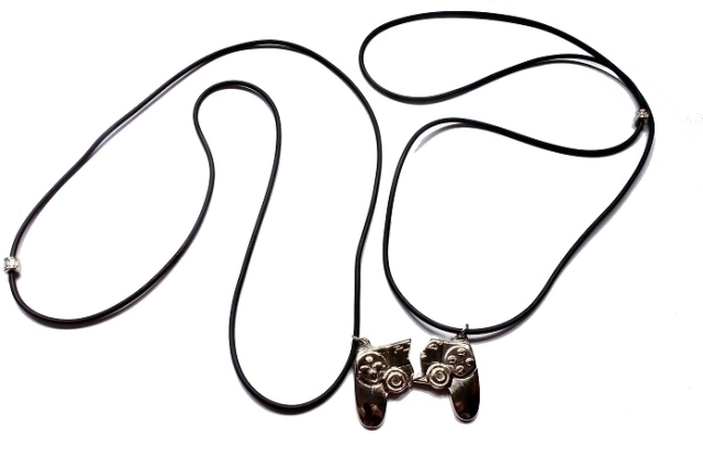 Na Br Nerds você encontra o colar da amizade PS4. São duas partes do controle do video-game que se encaixam, para você dividir com aquele gamer que você ama. Portanto com este colar duplo você presenteia seu (sua) crush ou amigo (a), fã de PS4, sem deixarem de ser Nerd.